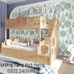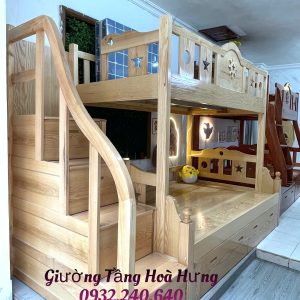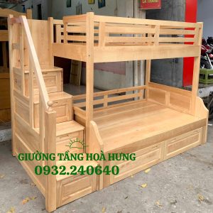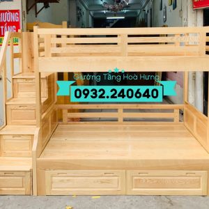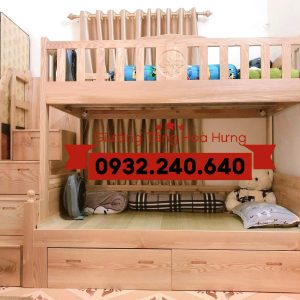 Thông tin sản phẩm Giường Tầng Gỗ Tự Nhiên – Gỗ Sồi – Cầu Thang Hộp – Chân Thẳng