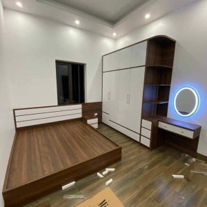 Giường gỗ phủ Melamine vân gỗ sồi ấm áp trang nhã