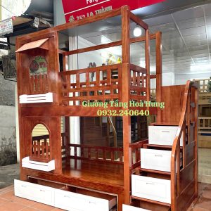Bàn học cho bé						 Giường tầng cầu thang hộp gỗ Sồi, có thành bảo vệ cao 76cm hình 2 ngôi nhà