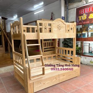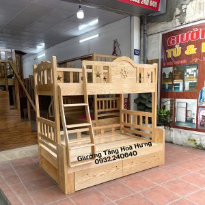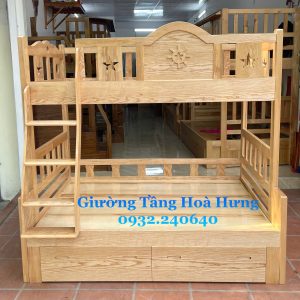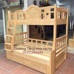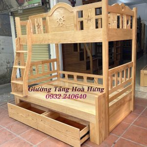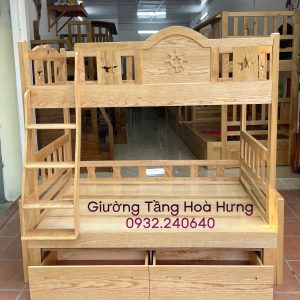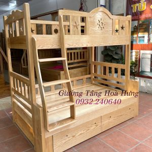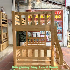 Giường tầng cầu thang treo, cỡ thông dụng, gỗ sồi :