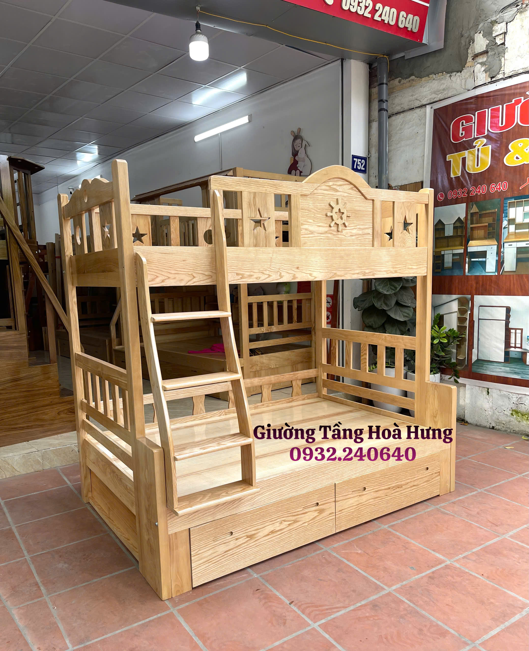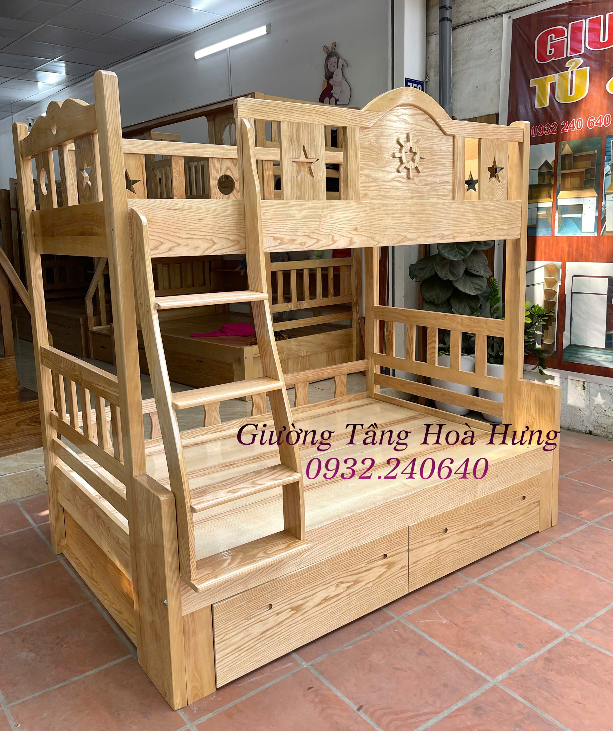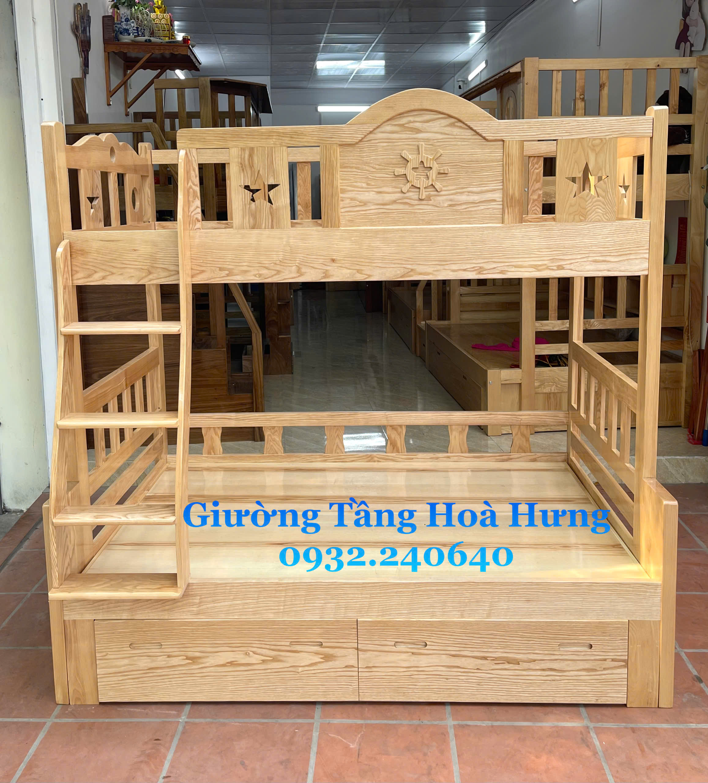 Giường tầng cầu thang treo, cỡ thông dụng, gỗ sồi :