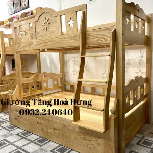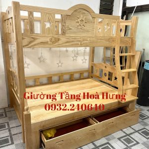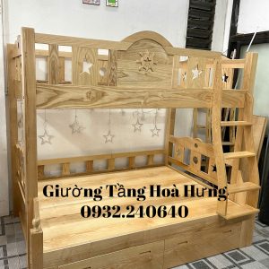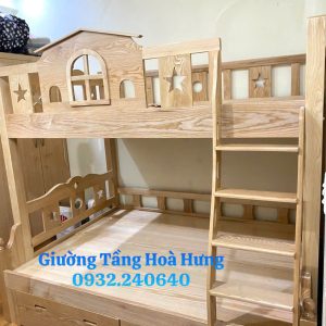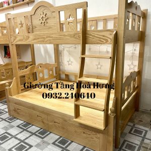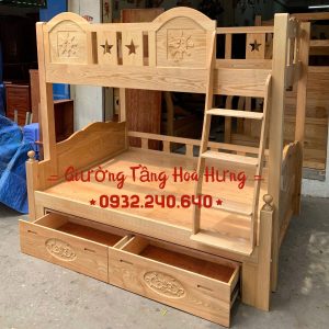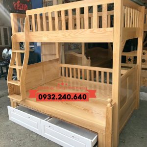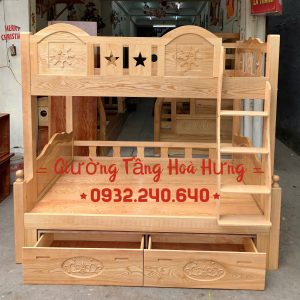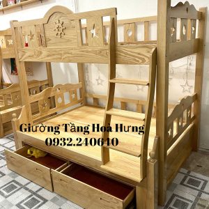 Giường tầng cầu thang treo, gỗ sồi,cỡ to: