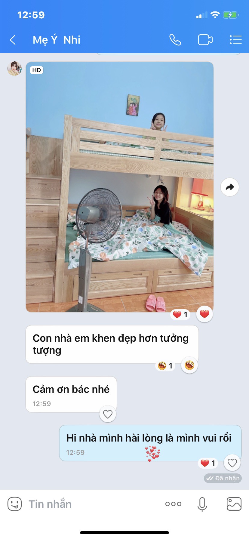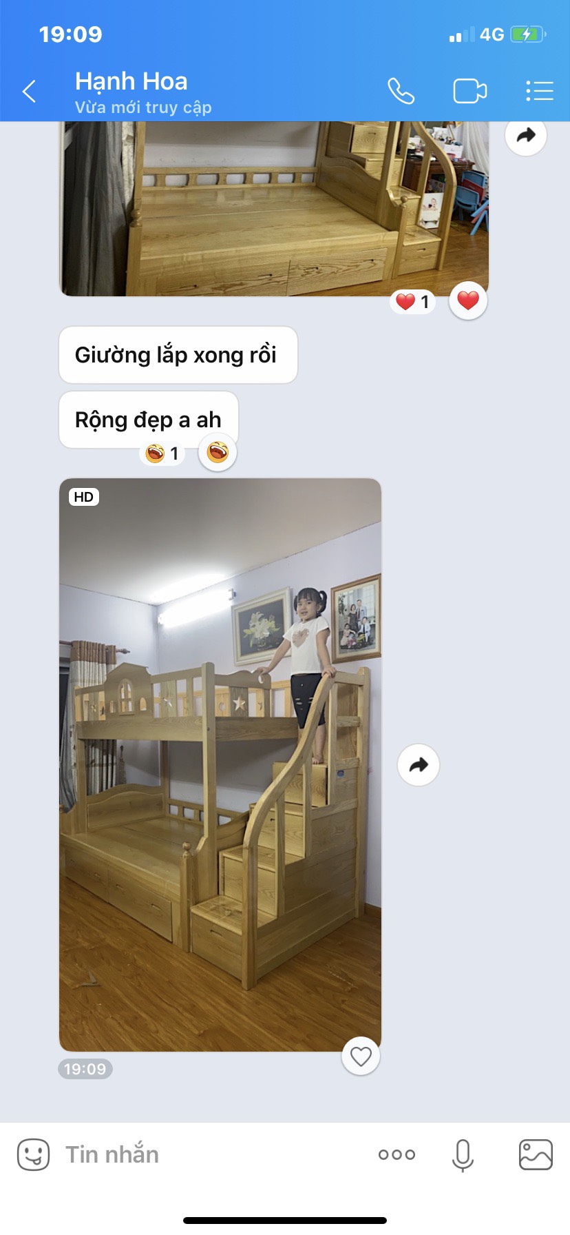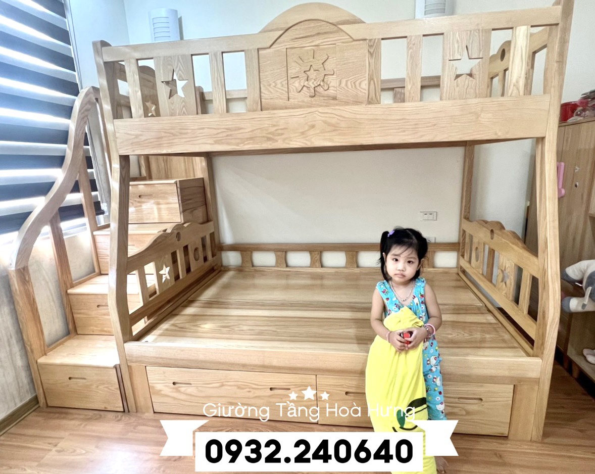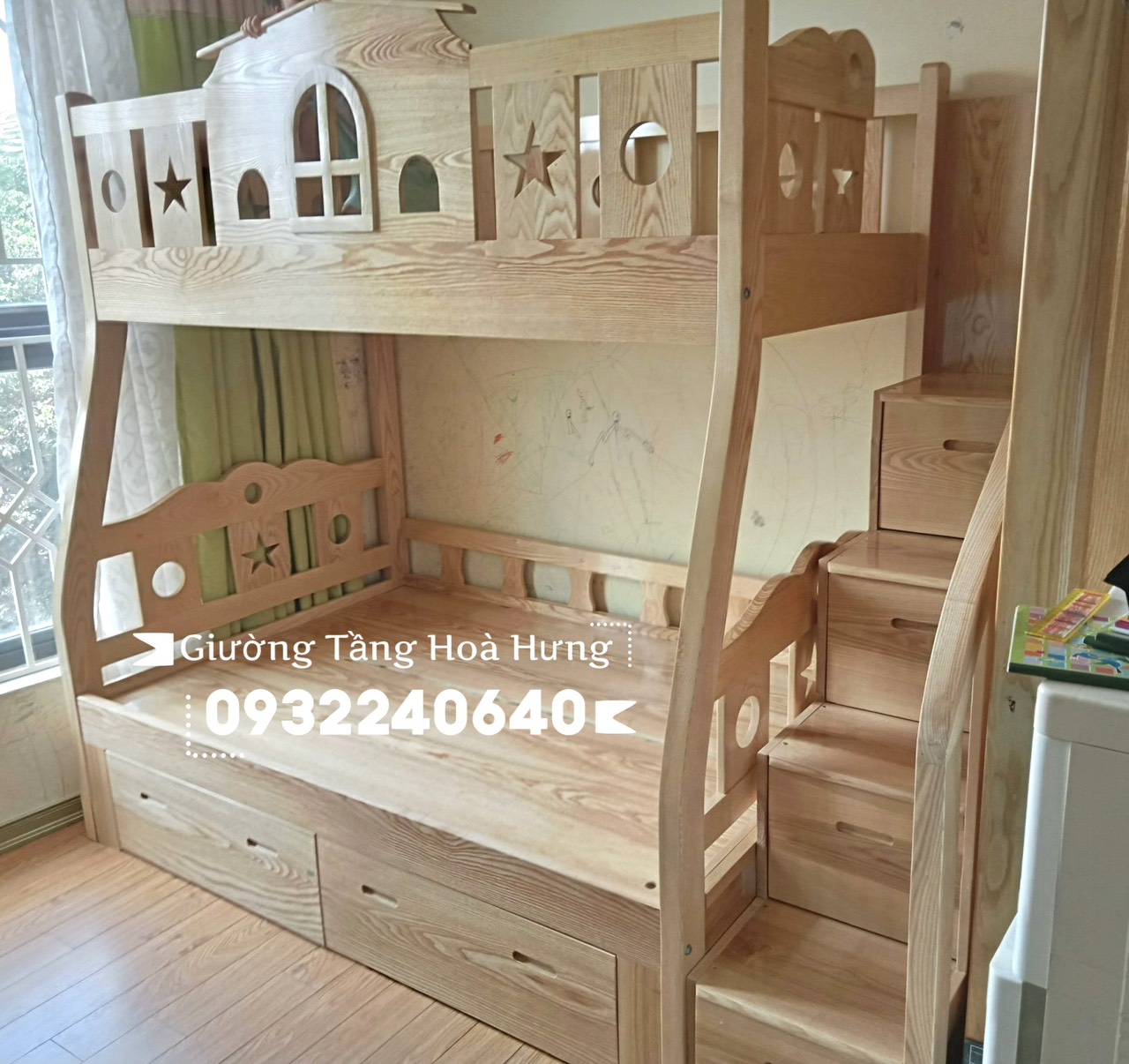 * Ảnh lắp đặt thực tế giường 2 tầng cho bé gỗ Sồi thang hộp 1m2-1m thang hộp