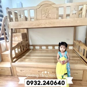 - Tên sản phẩm: Giường Tầng Cho Bé 1m-1m2 gỗ Sồi Thang Hộp