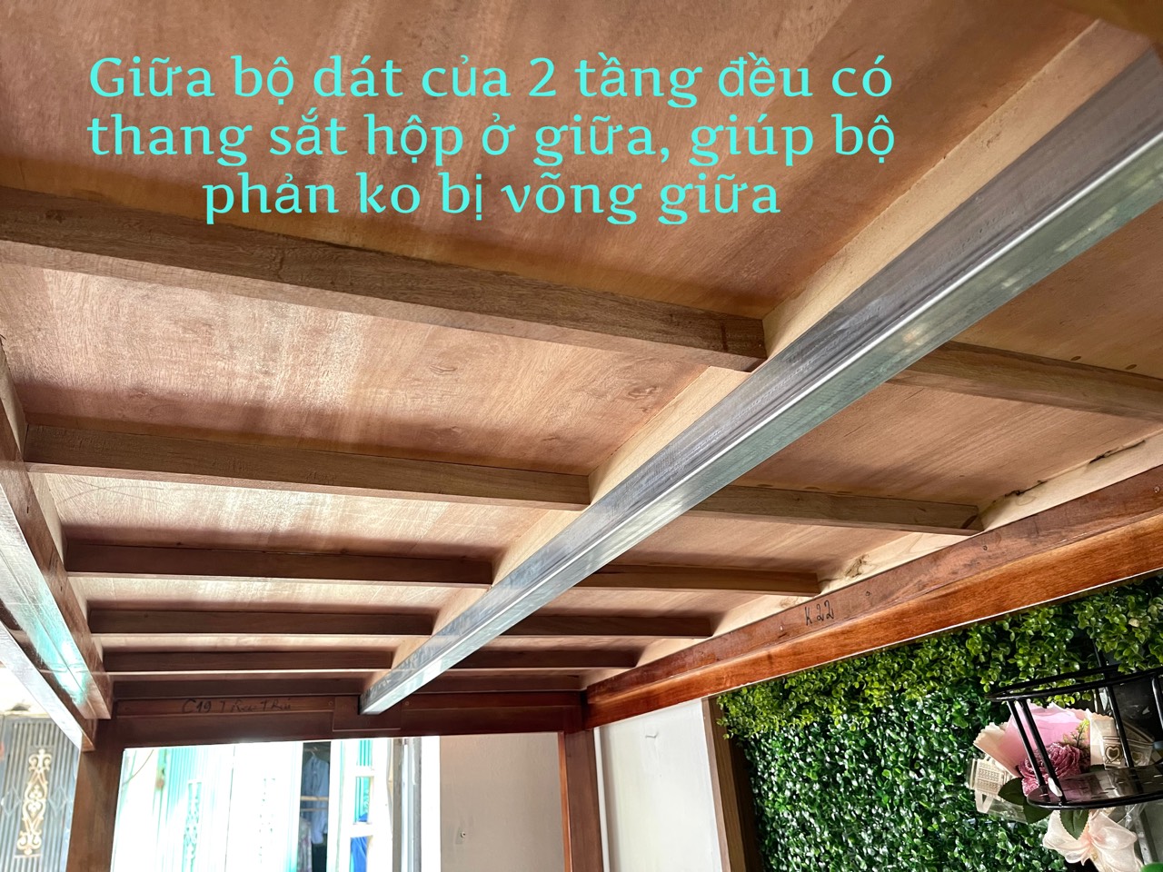 ☑️Dát giường : đa số nơi khác sẽ sử dụng loại phản gỗ công nghiệp ( nó là 1 tấm to 1m x 1,9m và 1,2m x 1,9m 2 mặt nhẵn nhụi như nhau) hoặc là dát nan, còn sản phẩm của shop sẽ là 2 phên dát phản gỗ thịt như ảnh ( mỗi phên đóng bo khung các góc và phía dưới đóng thêm nhiều xương đỡ ) và giữa 2 phên dát sẽ dùng thang sắt hộp đỡ,nếu nói về giá trị thì chắc chắn loại dát phản khung 2 phên mà shop đang sử dụng sẽ đắt hơn rồi.