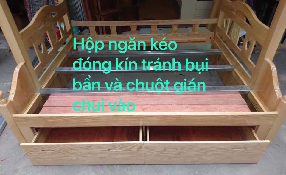 ☑️Ngăn kéo ở gầm giường : ngăn kéo ở gầm giường của shop sẽ được đóng như 1 bao diêm kín các góc tránh bụi bẩn,chuột gián chui vào ngăn kéo,còn đa số sẽ chỉ làm mỗi nắp ngăn kéo ( phần kéo ra kéo vào) và gắn vào 2 chân giường chứ ko hề kín các góc như ngăn kéo mà shop mình đang làm.