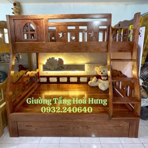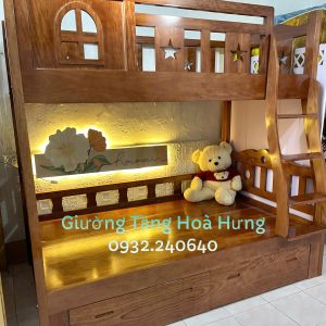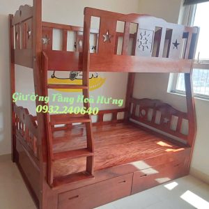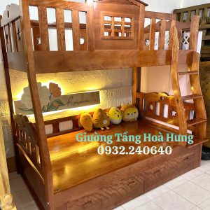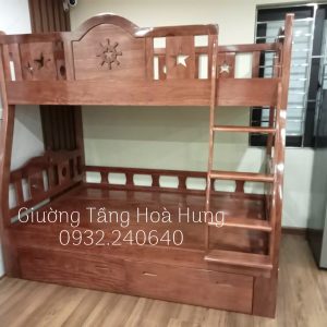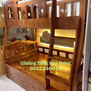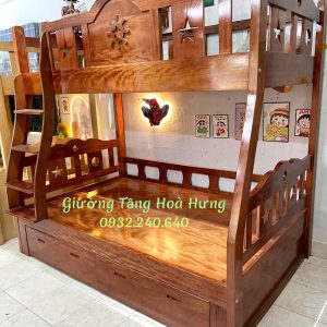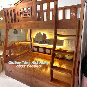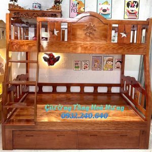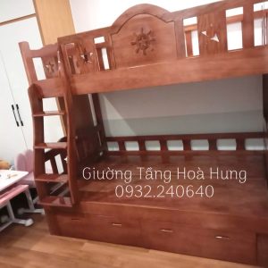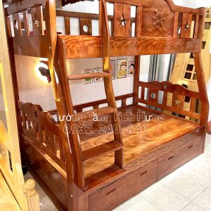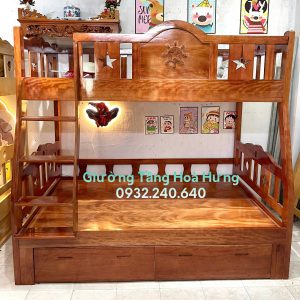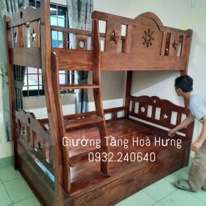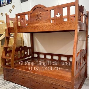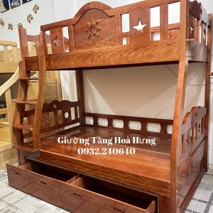 Giường Tầng gỗ Xoan đào cầu thang hộp chân cong
