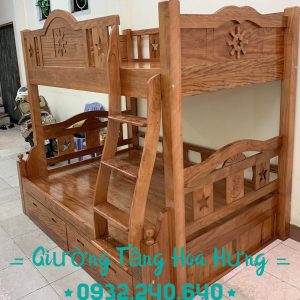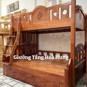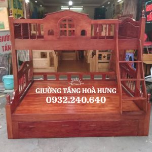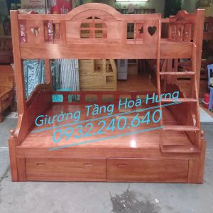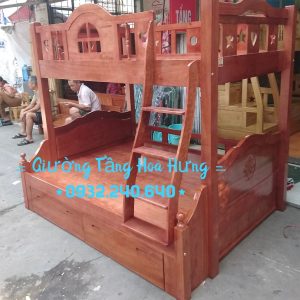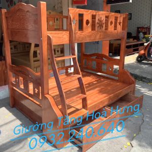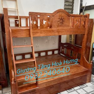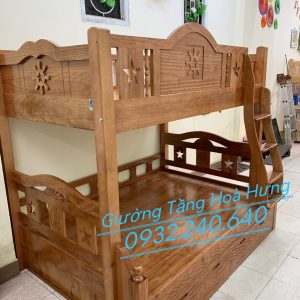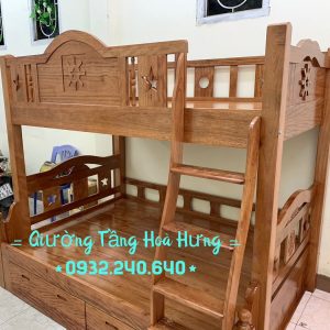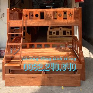 Giường Tầng gỗ Xoan đào cầu thang hộp chân cong