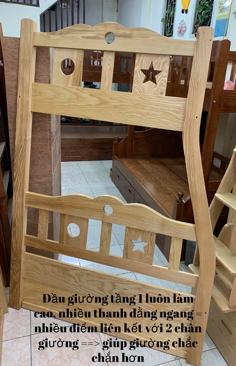 ☑️Khung đầu giường tầng 1 : ở phần đầu giường tầng 1 của shop sẽ làm 4 thanh xà ngang ( chi tiết này giúp dằng khỏe cho tầng 1 và sẽ làm bệ đỡ khỏe cho tầng 2 ) còn đa số các nơi khác sẽ làm 2 thanh xà ngang,1 chi tiết ăn bớt rất khéo mà ít người nhận ra.