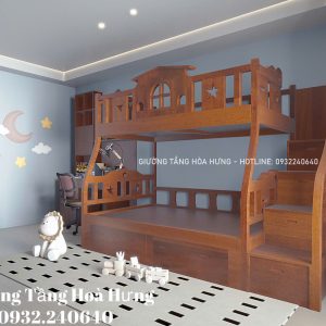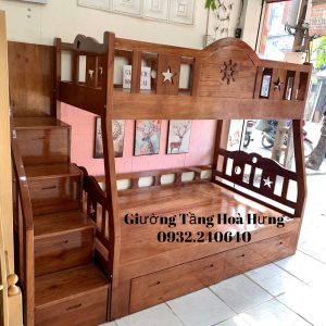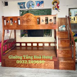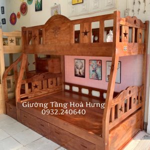 Giường Tầng gỗ Xoan đào cầu thang hộp chân cong