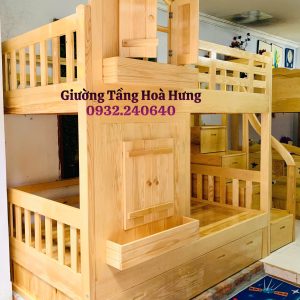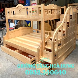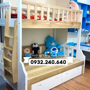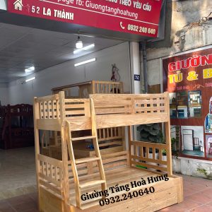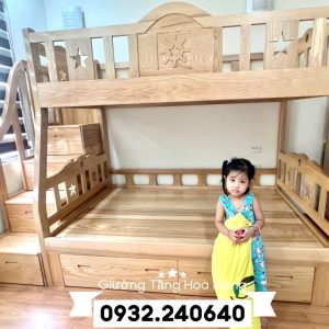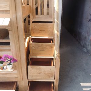 Giường Tầng Gỗ Tự Nhiên - Gỗ Sồi - Cầu Thang Hộp - Chân Thẳng