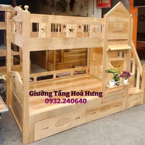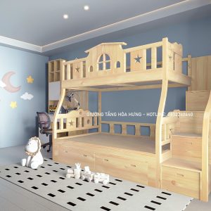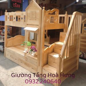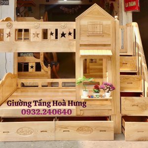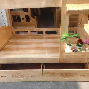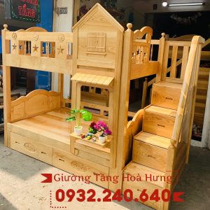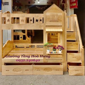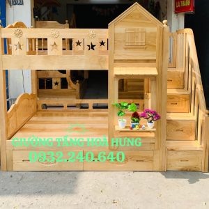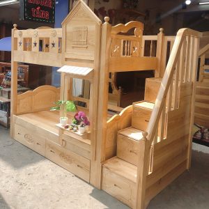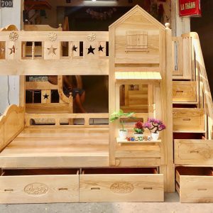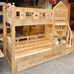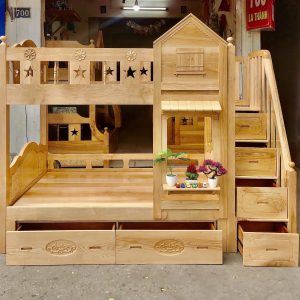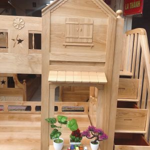 Giường Tầng Hình Ngôi Nhà – Gỗ Sồi – Cầu Thang Hộp