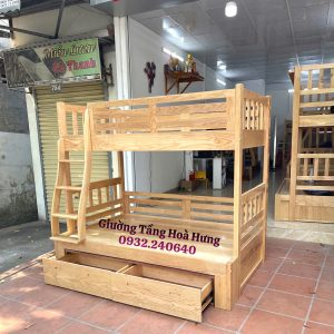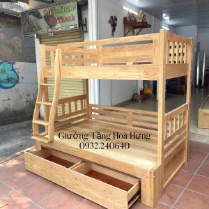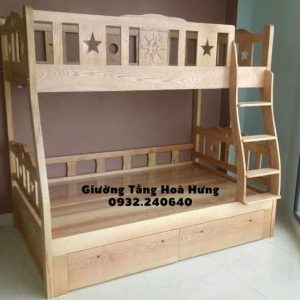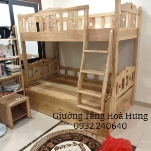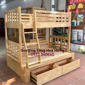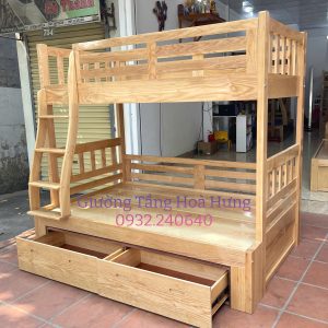 Giường tầng Sồi Treo vai thẳng trang trí hoạ tiết lái tàu hoặc hoa có nhiều tính năng vượt trội: