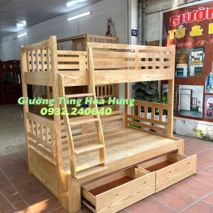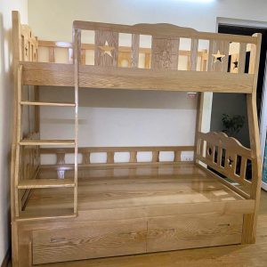 Thông tin sản phẩm Giường Tầng Gỗ Tự Nhiên – Gỗ Sồi – Cầu Thang Treo- Mẫu Đơn Giản