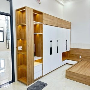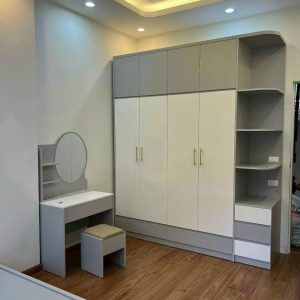 Tủ quần áo gỗ công nghiệp khác với tủ quần áo gỗ tự nhiên, sự khác nhau ở đây là khác về chất liệu làm ra nó. Hiện nay gỗ tự nhiên đang dần được khan hiếm, thay vào đó chất liệu gỗ công nghiệp đang dần phổ biến rộng rãi. Tủ quần áo gỗ công nghiệp được làm từ chất liệu cốt gỗ công nghiệp như MDF, MFC,HDF,HMR…Bề mặt được phủ bằng các chất liệu như melamine, laminate, Acrylic..với nhiều màu sắc khác nhau và các họa tiết vân gỗ, vân đá rất tự nhiên.